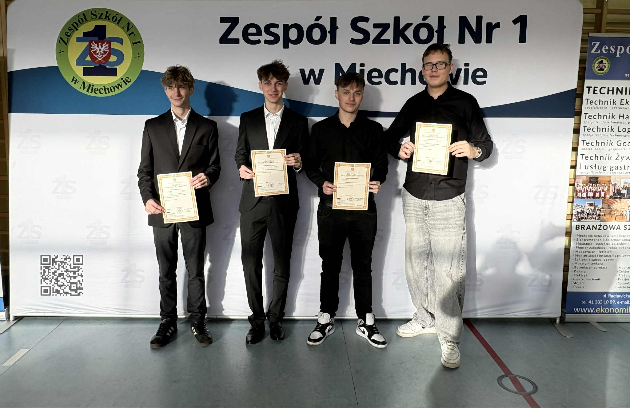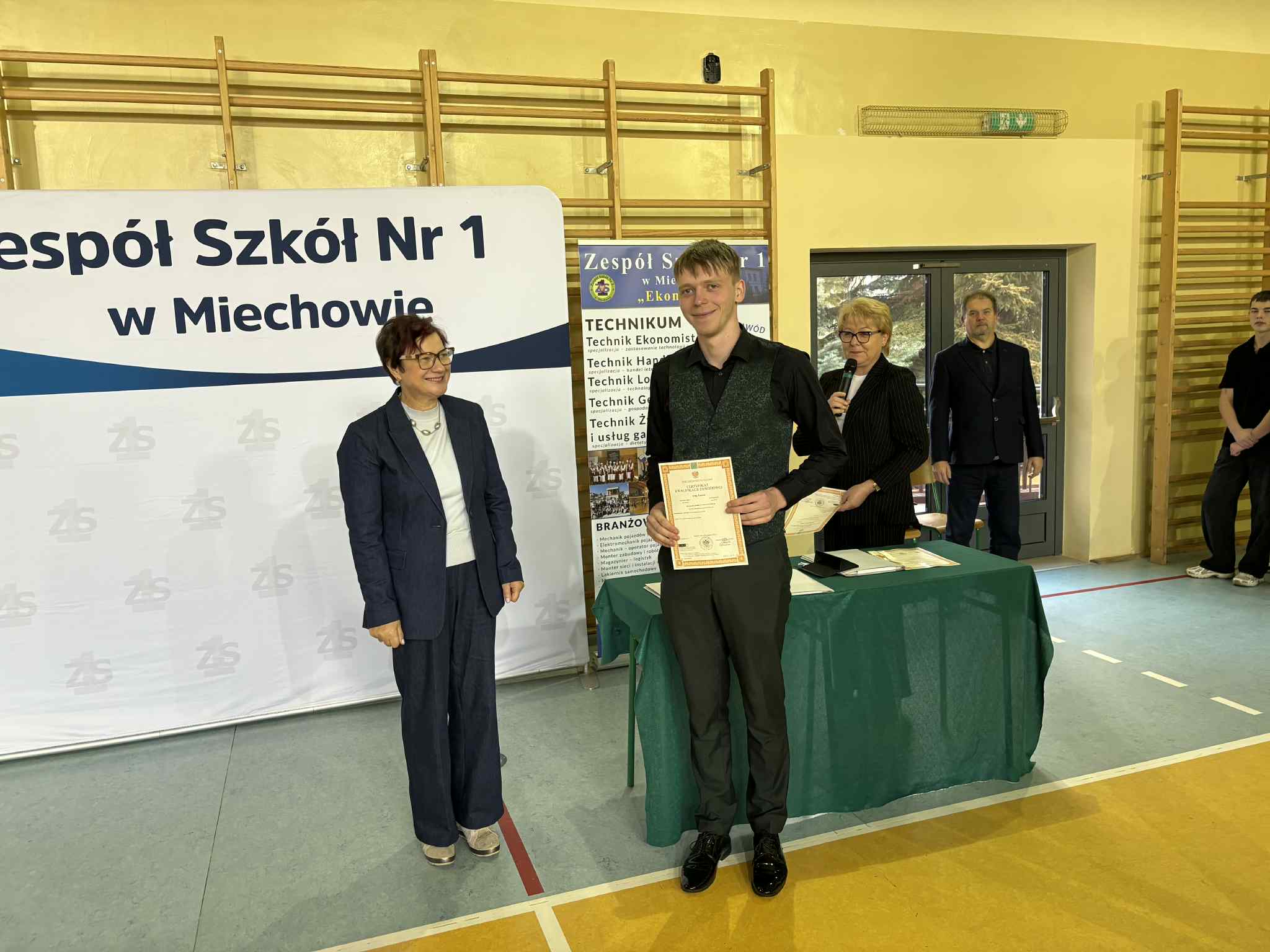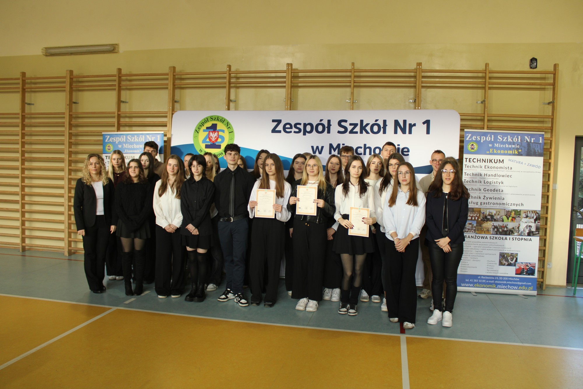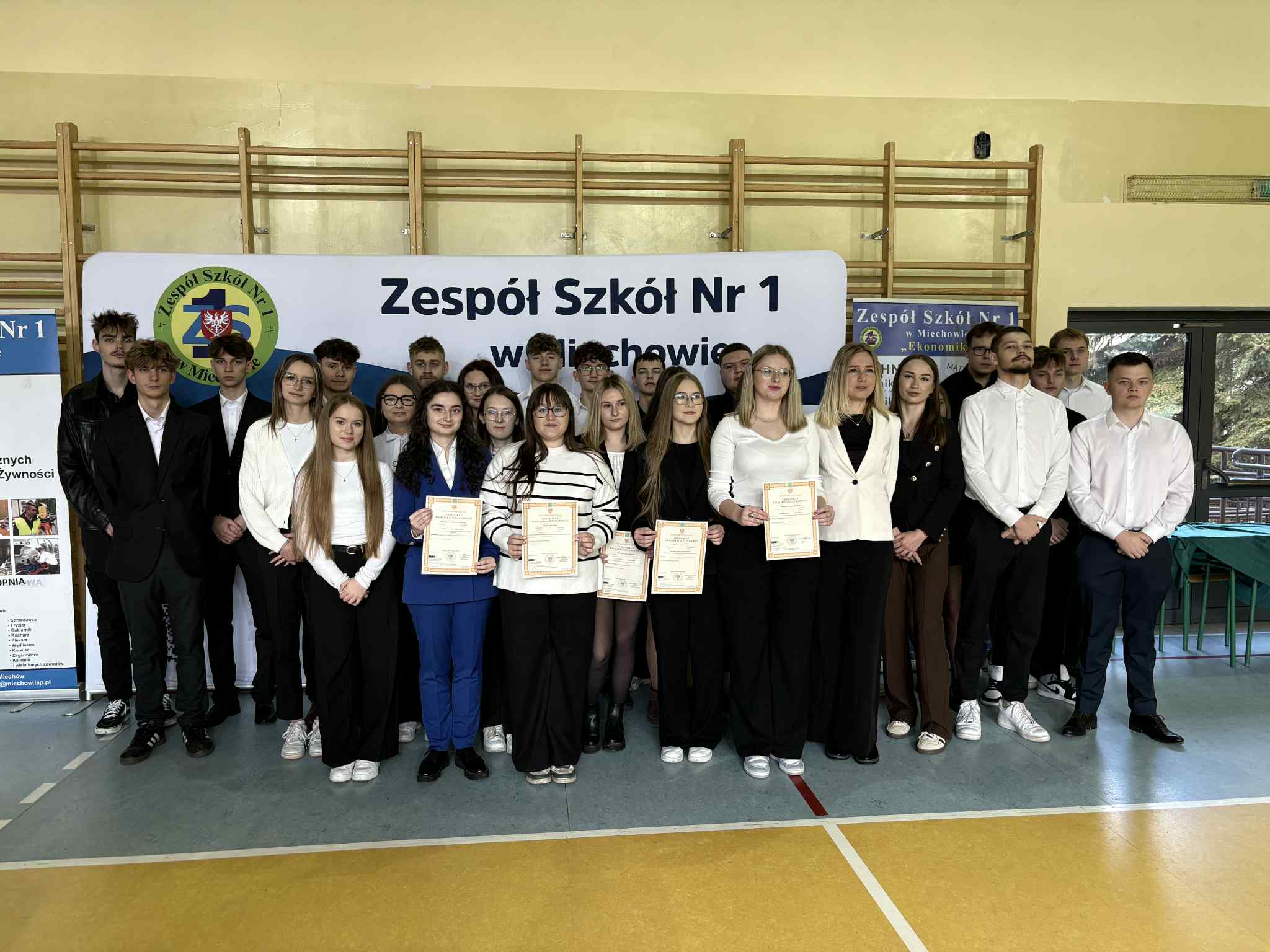 Gratulujemy uczniom klas piątych wysokich wyników z egzaminu zawodowego. Certyfikaty otrzymało 100% maturzystów. W Zespole Szkół Nr 1 w Miechowie w dniu 18 listopada 2025r. z rąk Dyrektora Szkoły, Pani Marzeny Samborskiej, uczniowie odebrali certyfikaty.