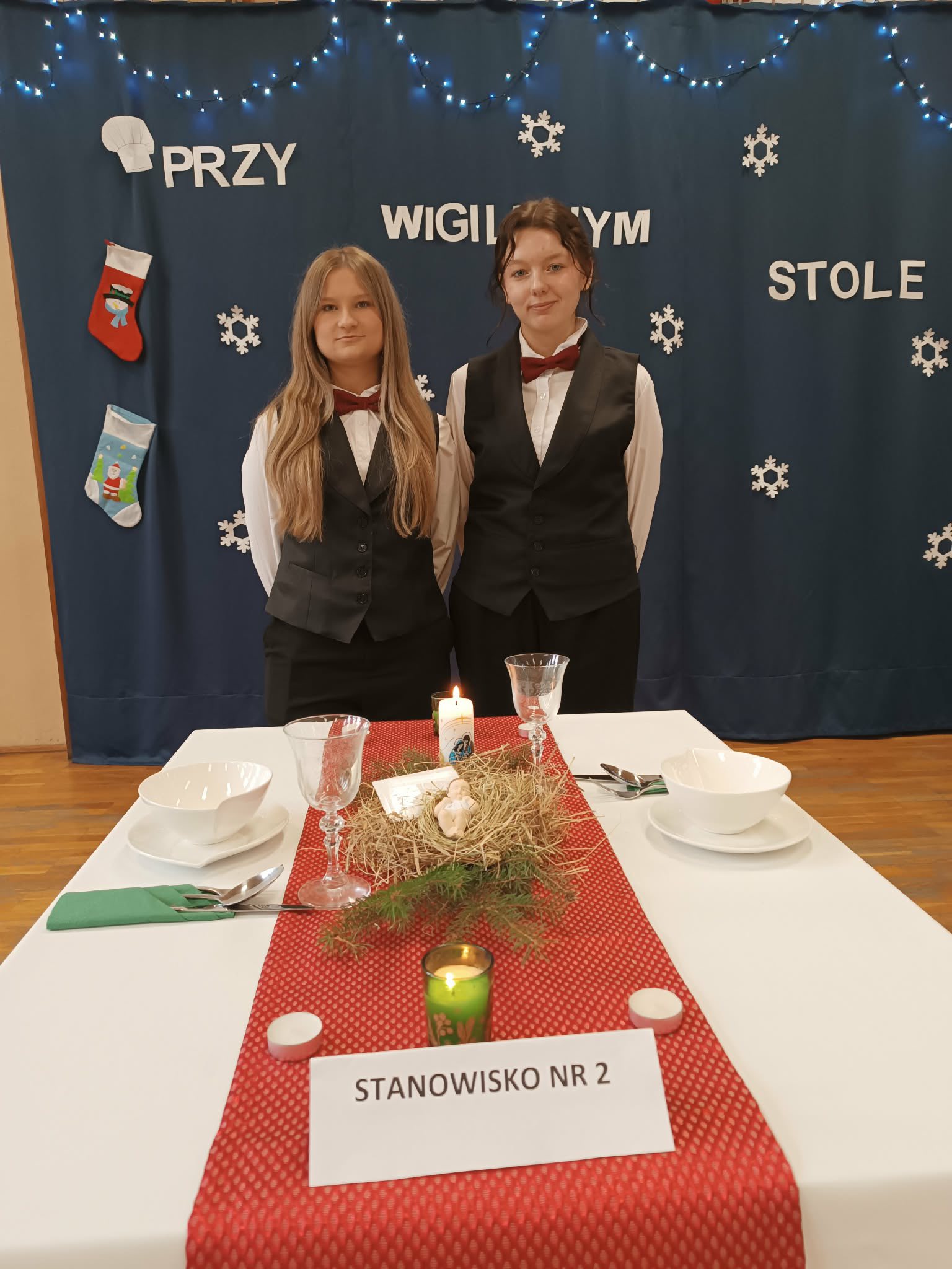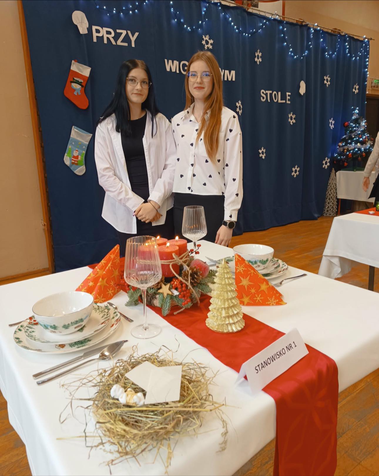 I miejsce – dekoracja stołu wigilijnego: Klaudia Gibek i Daria Kliushnyk (kl. 2S)