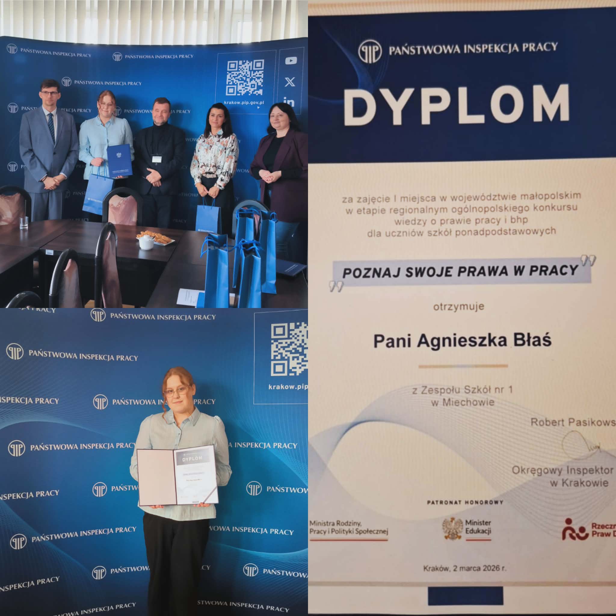 18.02.2026 r. w tegorocznym etapie regionalnym XIII edycji konkursu “Poznaj swoje prawa w pracy” wzięło udział 64 uczniów z 32 małopolskich szkół. Do drugiego etapu konkursu przeszło 5 finalistów w tym Agnieszka Błaś i Mateusz Zięba – EKONOMIŚCI z kl. 4p.